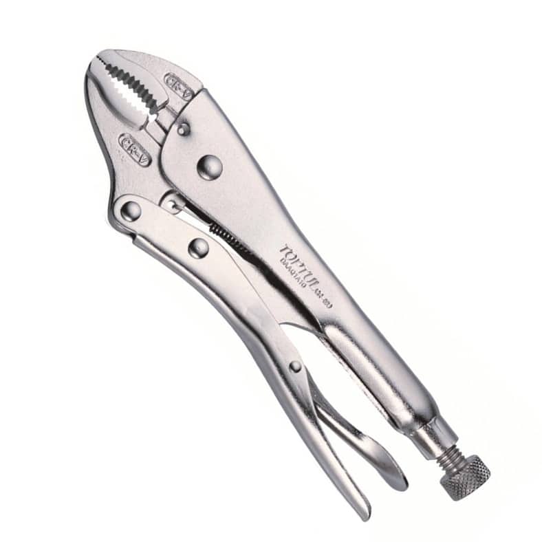 The curved-jaws locking pliers with wire cutters is a versatile tool designed to handle gripping tasks with ease ensuring secure and precise handling in all circumstances. Made of high-quality Chrome Molybdenum alloy steel, this plier is built for professional use. The nickel plated finish protects against corrosion and makes it especially suitable for automotive repairs.