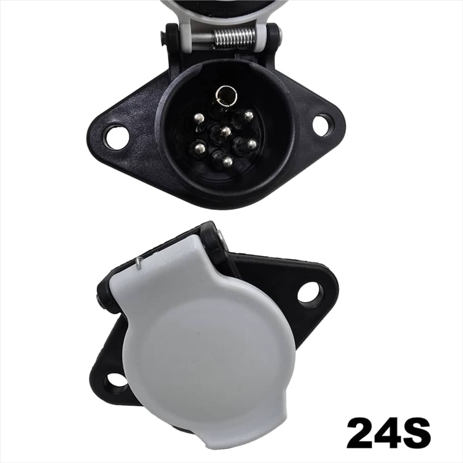 Female trailer socket for transferring power from the towing vehicle to the towed trailer or caravan.