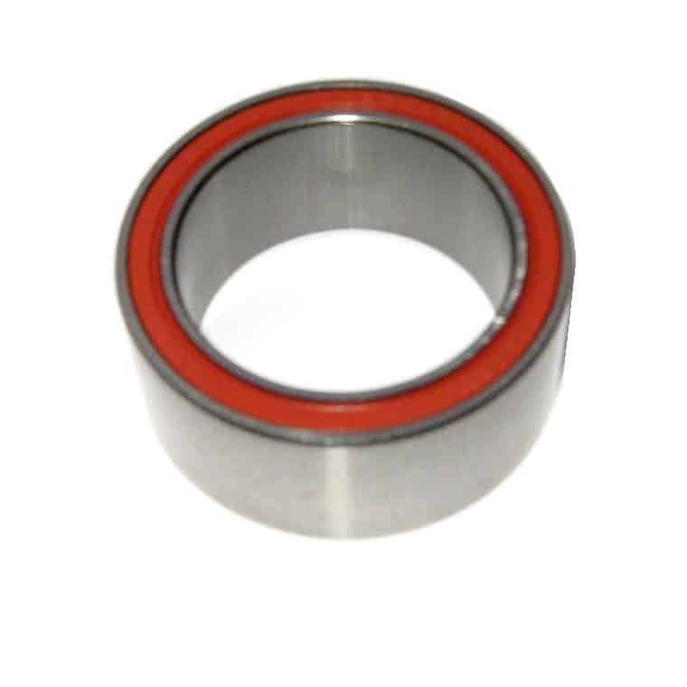 NSK quality double-row angular contact ball bearing for automotive air conditioning magnetic clutch applications. Features premium materials and components including optimum heat treatment, double rubber seals against dust and water and high performance grease for high temperature durability and smooth quiet rotation