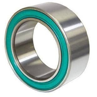 NSK quality double-row angular contact ball bearing for automotive air conditioning magnetic clutch applications. Features premium materials and components including optimum heat treatment, double rubber seals against dust and water and high performance grease for high temperature durability and smooth quiet rotation