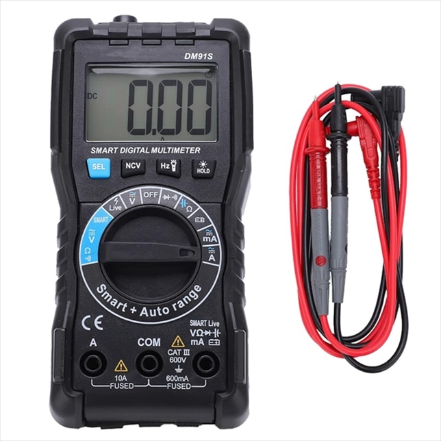 Manual auto ranging intelligent digital multimeter with powerful functions and wide application. Suitable for the professional and the DIY alike. It can be used to measure AC voltage, DC voltage, DC current, AC current, capacitance and resistance, etc. Features backlight, automatic shutdown and data retention.