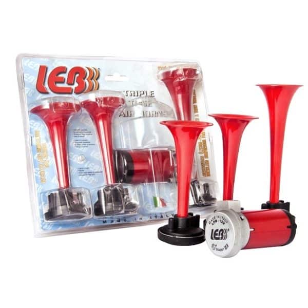 Compressed air dual horns with strong acoustic intensity. Suitable for medium-heavy vehicles such as vans, trucks, campers, buses. Connected to an air electro-compressor or to the vehicles air system by means of special air valves. It can be mounted externally to the vehicle or under the engine hood. The chromed horns, of aesthetic validity, are made of aluminium alloy, while the base is in nylon. In the ACTC / 2INT model, the air solenoid valves are controlled alternately by means of an electronic interval device so as to emit the notes FA-LA alternately.