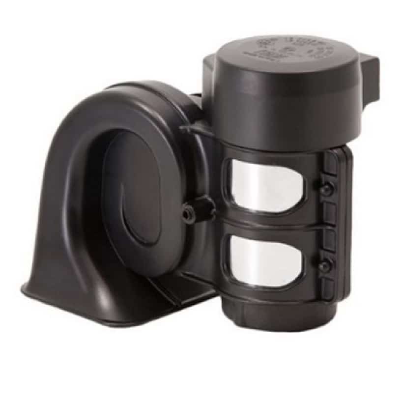 Electropneumatic horn {Twister} with a monotone sound, very low bass. Extremely compact and easy to install, without connecting pipes. Highly reliable engine. Ideal for mounting on SUVs, trucks, campers, trucks.