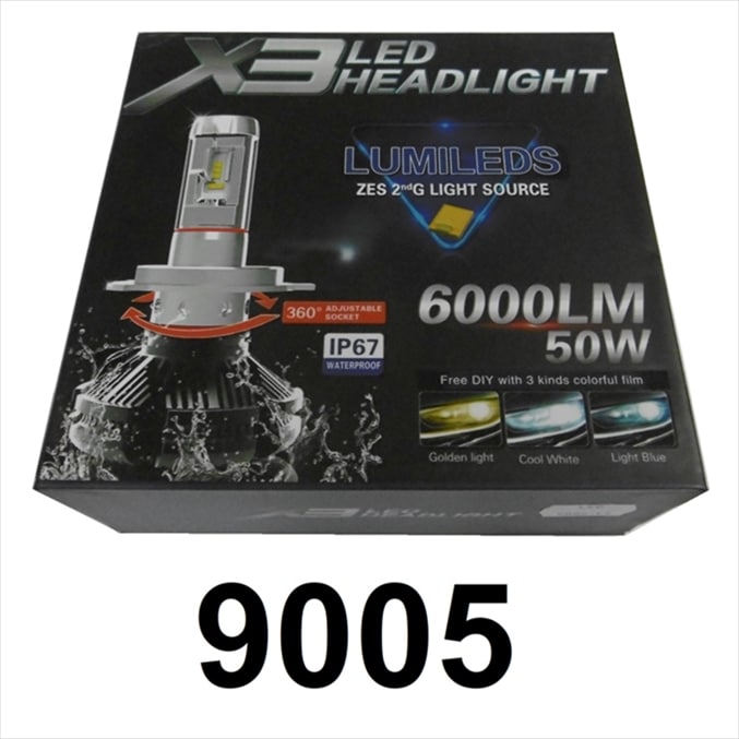 High quality, plug and play automotive headlight conversion kit, 9005 50W 5500Lm for Hi/Lo beam. Built to IP65 standards for durability and extended lifespan.