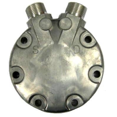 Rear compressor cover for Sanden with fittings on the side (vertical)