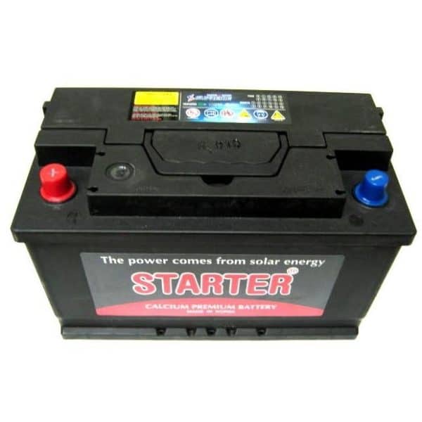 STARTER brand high-performance CMF battery made by Solite Korea. The hyper–resistant PE separator provides long-lasting performance with good cranking even in extremely cold conditions. Features microporous flame arrestor filter attached to the cover exhaust, blocking any leakage of electrolyte, thereby preventing rupture as well as the corrosion of the automobile body and environmental pollution. The fitted self-inspection Magic-Eye indicator enables the user to monitor the condition and usability of the product throughout its lifespan.