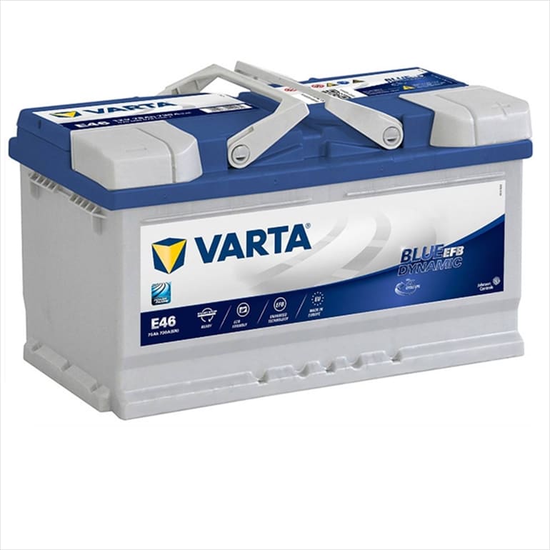 VARTA brand, high-performance Blue Dynamic EFB battery for high-performance applications, made in Germany. Thanks to its EFB enhanced technology, which is suited for start-stop vehicles that start the engine multiple times in a single journey, VARTA® Blue Dynamic EFB batteries have x2 the endurance of conventional Varta batteries. Designed for vehicles with higher than normal energy demands whether that means a tougher drive schedule, multiple accessories and equipment installed, or start-stop-enabled cars without regenerative braking technology.